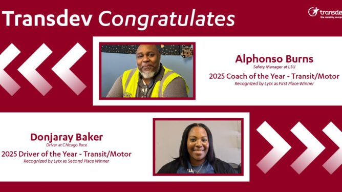 Transdev NA is proud to announce that Alphonso Burns and Donjaray Baker have been honored in Lytx’s 2025 Coach and Driver of the Year Awards.