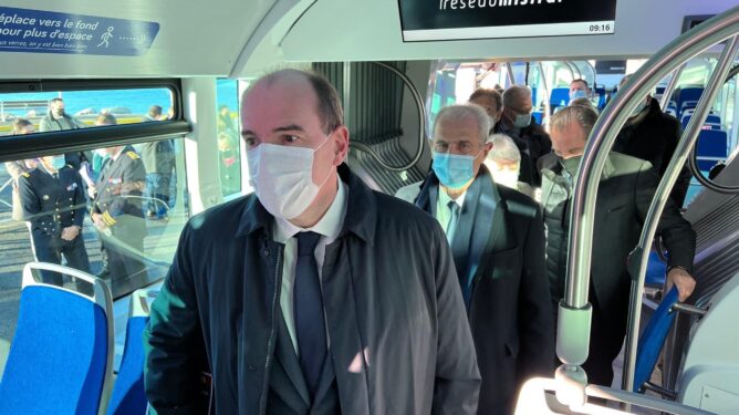 Le Premier Ministre Jean Castex visite les bus à énergie propre à Toulon