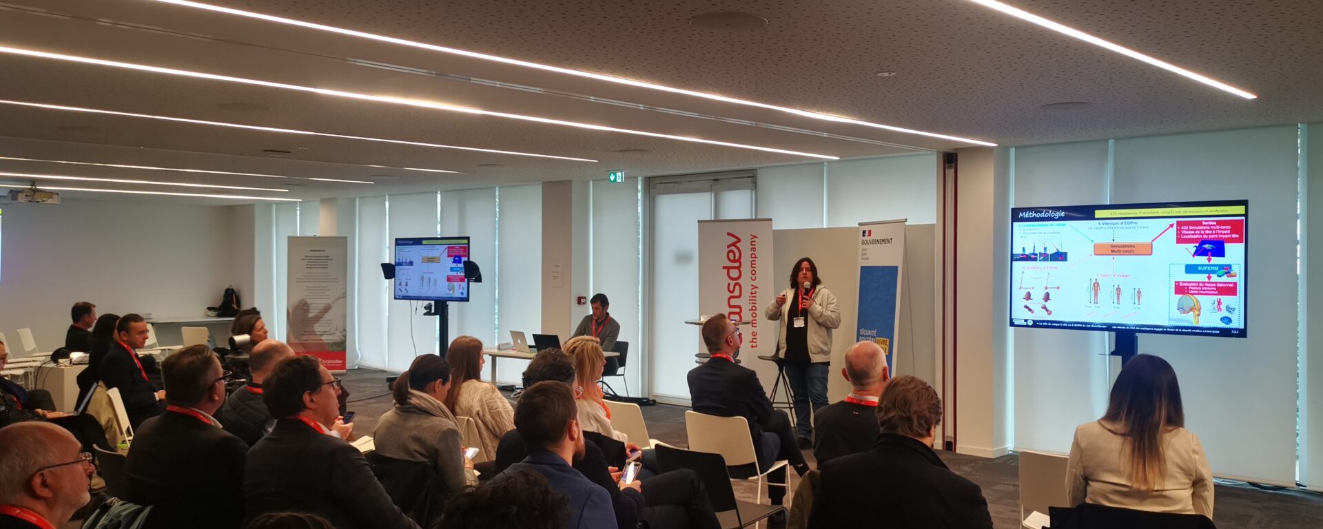 Virginie Fernandes Directrice de la Stratégie et de la Transformation du Groupe a introduit cette journée avec un mot de bienvenue. Stéphane Martin, directeur Qualité, Sécurité et Environnement a ensuite présenté le Groupe et pris la parole sur les engagements de Transdev au sujet de la sécurité routière.