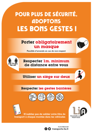Outre la mobilisation des équipes et des forces de l’ordre pour accompagner le respect du port du masque, obligatoire pour les voyageurs, de nouvelles mesures sanitaires ont été déployées à bord du réseau LiA afin d’assurer la protection des passagers et des équipes.