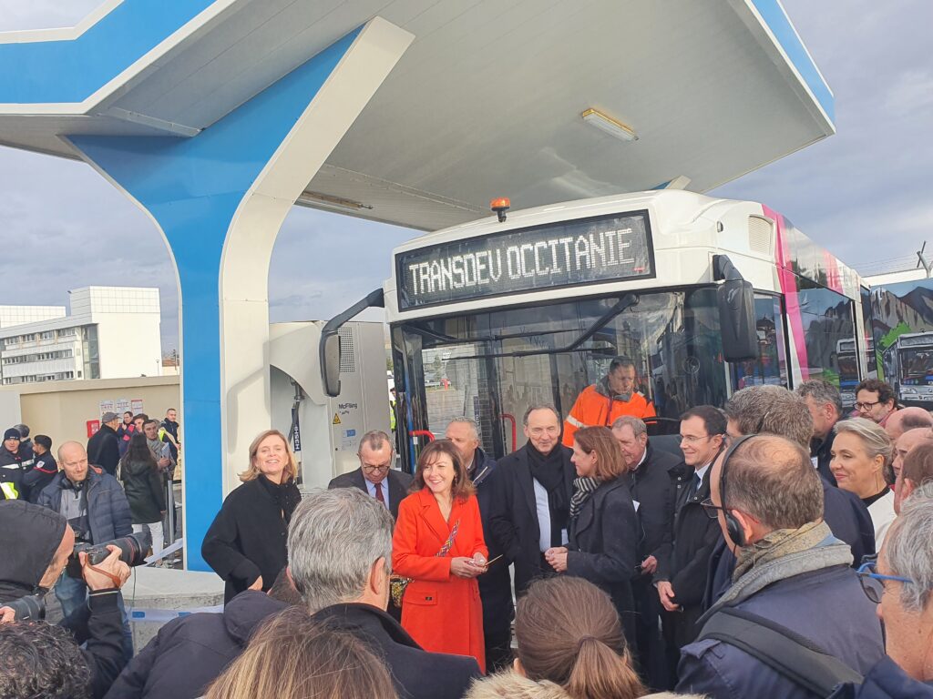 Un moment inaugural clé, sous le prisme de la transition énergétique, organisé par la société Hyport, Engie Solutions et l’Agence régionale énergie climat Occitanie avec notamment la mise à disposition par Transdev Occitanie de 2 bus hydrogènes pour transporter plus de 200 invités.